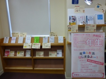FUT図書館では、【社会人1年生】に向けての予習BOOKコーナーを開催中です。