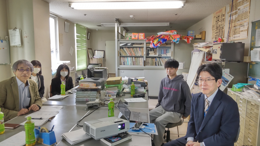勝山サン・プラザ矢戸理事長をはじめ事務局、勝山市商工文化課の新担当者や市民課からの参加もいただき、当センター長の芥子育雄 電気電子情報工学科教授および芥子研究室所属の学生(4年生/大野市在住)との間で活発な意見交換が行われました。