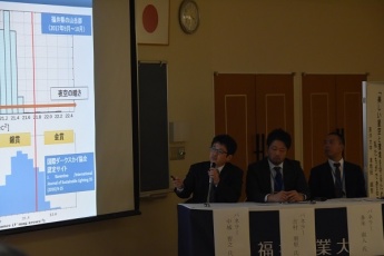 二部では、フューチャーセッションとして本学工学部建築土木工学科(ふくいPHOENIXプロジェクト観光文化研究軸メンバー)多米 淑人教授より『ふくいでの地域協働に関するこれまでの取り組みについて』のテーマにて話題提供を頂き、ディスカッションでは本学工学部建築土木工学科(ふくいPHOENIXプロジェクト観光文化研究軸メンバー)下川 勇 准教授をコーディネーターとし、越智氏、本学工学部電気電子工学科(ふくいPHOENIXプロジェクト事業推進コーディネーター)中城 智之 教授、多米教授、本学工学部建築土木工学科(ふくいPHOENIXプロジェクト観光文化研究軸メンバー)吉村 朋矩 准教授らと一緒に、本講座に参加頂いた聴講者の方々を交えながら、星空と地域資源を融合しオリジナル性の高い星空の見せ方を研究する観光文化研究軸の課題に対し、福井の星空の魅力を探るべく星空が美しく見える場所や、星空に結び付けることで魅力が高まる地域資源の発掘について議論しました。