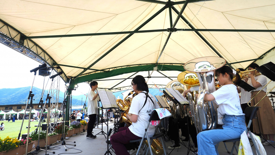 目の前には三方五湖周辺独特の美しい山並みと新緑が広がり、学生たちも気持ちよく演奏が出来ました。運営にあたられました実行委員会の皆さま、若狭町の関係の皆さま、貴重な機会を頂きありがとうございました。
