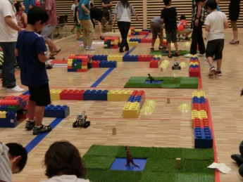 平成28年8月21日(日)10:00~18:00に、レゴマインドストームを用いた「親子ロボット体験教室」を福井市にぎわい交流施設ハピリンホール(福井市中央)で開催しました。(16組の親子が参加)