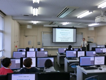 本学、環境情報学部経営情報学科 恐神 正博 教授による未来塾FUT公開講座「はじめてのコンピュータプログラミング~スクラッチをつかってみよう~」を平成30年10月6日(土)に開催し、3組8名の親子に参加していただきました。講師は恐神研究室でプログラミングを学んでいる学生たちが務めました。
