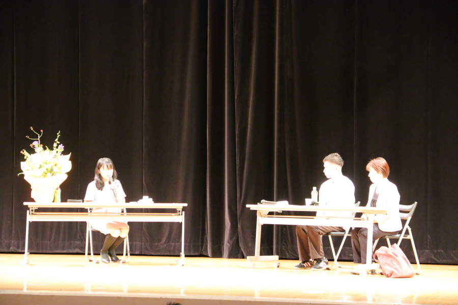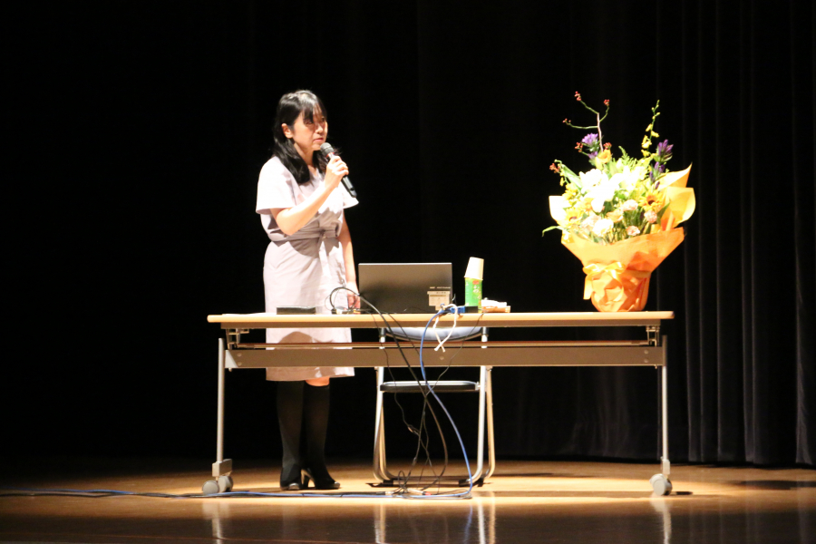 2025年10月2日、鯖江市文化センター大ホールにて、本学経営情報学部経営情報学科の加藤千枝准教授が講演を行いました。続いて、本学3年生の高田裕杏さん、公認心理師の河野奈津さんとパネルディスカッションを実施し、インターネット上のヒヤリ・ハットを安心して共有できる「斜めの関係(家族や担任などの縦横関係以外の第三者的つながり)」の必要性を強調しました。