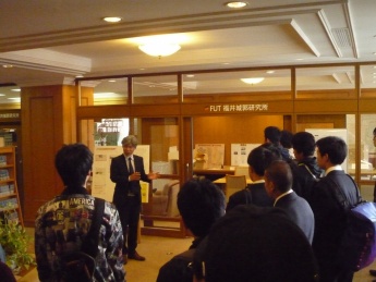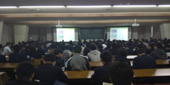 全体説明会では、掛下学長の挨拶に始まり、池田入学センター長より本学の概要説明に加え、「ふくいPHOENIXプロジェクト」、本学独自の英語教育プログラム「SPEC」について紹介されました。また、本学の紹介動画が上映されました。