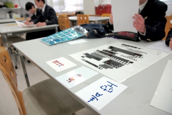 学生の課題作品を見ながら実習内容や取り組みなどについて説明