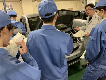 「車の中にはエンジンだけでなく、水をだす機械や冷やす機械があって興味深かったです。2年したら車の免許をとるので、今日学んだことを生かしたいです。」