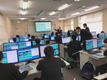 本学の概要や特色について説明後、機械工学科と電気電子工学科の授業を体験しました。