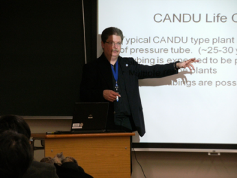 講師としてグレン・ハーベル氏(オンタリオ工科大学原子力工学科長)にお越しいただき、カナダが自主開発し、商用発電炉として世界各国で使用されている通称「CANDU」炉と呼ばれる重水減速重水冷却炉についてご講義いただきました。