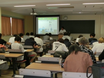本学科1年生30名を対象に、原子力規制委員会の設立経緯や組織・使命などを説明していただきました。また、原子炉等規制法の概要や、検査制度を詳しく解説していただき、福島事故の教訓と原子力発電所施設に係る新規制基準を説明していただきました。