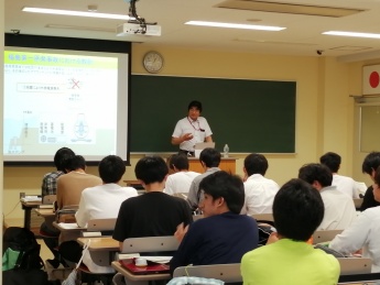 本学科1年生30名を対象に、福島第一原発事故後の原子力発電所施設にかかる新たな規制基準を詳しく解説していただき、いろいろな観点からの想定と対策を強化している事を説明していただきました。