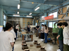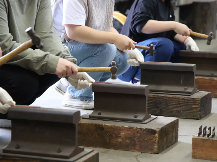 また、新館では、伝統的技法だけではなくデザイン手法が取り入れられた商品群の展示を鑑賞でき、デザイン的思考により新たなモノづくりの思想に触れることができました。モノづくり体験も実施し、実際に施設で働いている職人の方々の指導のもと、全員でペーパーナイフづくりを行いました。