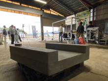 見学会では、国内唯一の建設用3DプリンタメーカーであるPolyuseによる3Dプリンターのデモンストレーションとともに、代表取締役/共同創業者である岩本卓也氏から3Dプリンターの技術や、水路の造形工程の説明をしていただきました。また、岩本氏は「現在、日本を含む各国で建設用3Dプリンターは実験的な段階から本格的な実用化へと進んでいる。建設業界に革新をもたらす技術である。」ことも述べられました。