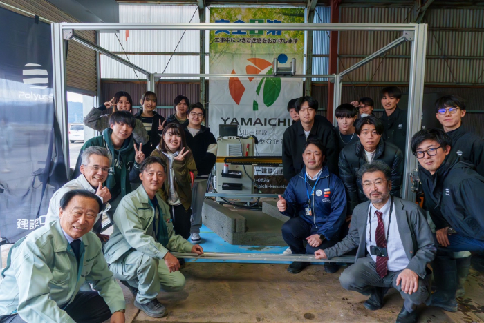2024年2月15日、山一建設が主催する「建設用3Dプリンターによる小型水路の造形現場見学会」に建築土木工学科の学生が参加。現在の土木工事は、新しい技術のオンパレードです。