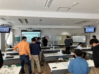 経営情報学科政策システムコース2年生向けのPBL科目「FUT実践学演習基礎」では、福井県庁カーボンニュートラルディレクターの岩井渉様をお招きし、2050カーボンニュートラル(脱炭素社会)への道のりをカードゲームで体験しました。学生は、政府、ものづくり、商社、NPOなど役割を与えられ、それぞれに与えられたゴール(利益追求やCO2削減など)の達成を目指しました。「各人が協力しないと温暖化対策が進まないことが体験できた、実際に対策を進めていくのは大変であることがよく分かった」等の声が寄せられました。その後各チームは、福井県内の地域課題を解決するアイディアを構想、検討を重ね、学期末のグループ発表に繋げました。