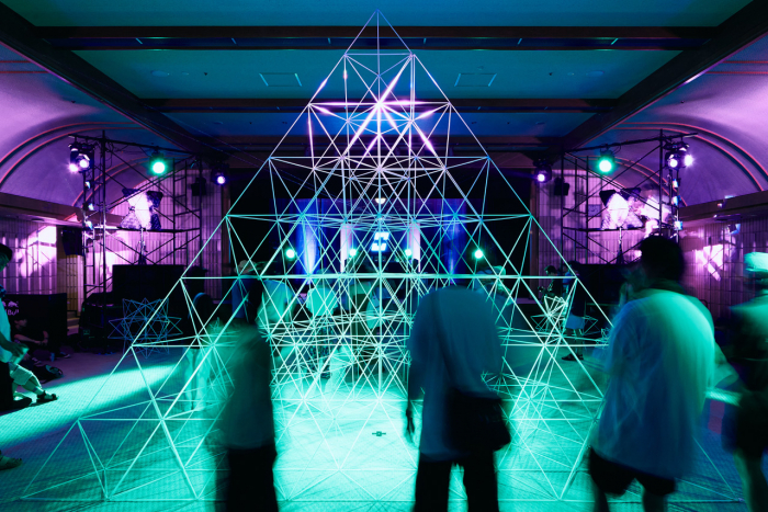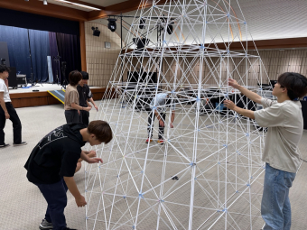 清水研究室では福井市中央公園で開かれる都市型フェス、ワンパークフェスティバルに2018年の第1回開催から、運営ボランティアスタッフとして、またストロー造形コテトラによる会場内のディスプレイ設置に関わってきました。昨年度2023年には福井県庁地下ホールを使ったDJフロア「PUBLIC BASE」の中心に、長さ60センチの特注ストローによる高さ4m超の正4面体「ギガコテトラ」を制作しました。レーザー光線で光り輝くギガコテトラを中心に、気持ちのよいダンスミュージックに合わせて、光と音の中でたくさんの人が気持ちよさそうに体を揺らしていました。今年も清水研究室はワンパークフェスティバル2024に参加、ボランティアスタッフやギガコテトラ設営を通して、この地域密着型フェスを支えます。みなさん会場で会いましょう、ぜひ!