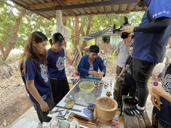 灼熱のタイに行ったのは4月26日~5月6日。学生はタイ北部で講義を受け、その後3日間を工房で過ごします。そして、帰国してからも2週間に1回は各チームでリモートミーティングを行い、デザイン制作と商品制作を行っています。6月8・9日に中間発表があり、8月18日の最終発表に向けて全チームがブラッシュアップ中です!