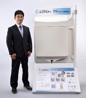 環境食品応用化学科 笠井研究室とデンカアステック株式会社(本社:東京都港区)で約2年間の期間をかけて開発したトイレ洗浄用雨水タンク「PURE EDEN(ピュアエデン)」が2024年度グッドデザイン賞を受賞しました。常時から雨を水資源として活かしながら、災害発生時にも通常通りトイレ洗浄などに生活用水として雨水が使える雨水タンクです。国内初の壁掛け式雨水タンクとすることで、ベランダのエアコン室外機の上部など空きスペースを有効に利用して様々な場所に設置できることが大きな特徴です。