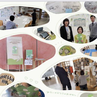 大学院生葛西朱里さんが中心となり、共同研究の成果である福井県道路ビジョンの広報リーフレット※1「ふくいのどうろのおはなし」を活用し、展示ブースのデザインやビジュアル制作等を行いました。