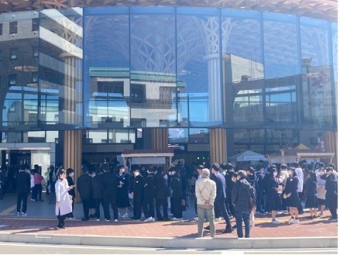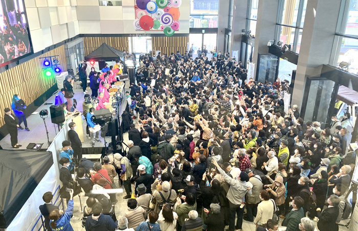 北陸新幹線延伸に向けて、福井の玄関口となる芦原温泉駅のシンボルとなり、同時に地元の人たちの交流拠点となることを目指して、あわら市が長年にわたり準備してきた施設です。この日集まった8,000人の盛り上がりが、市民の期待を表しています。