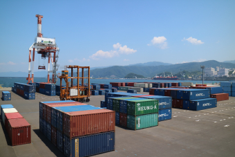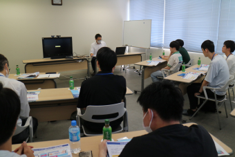 経営情報学科菊池武晴研究室、岩本朋大研究室、近藤智士研究室は合同で2023年7月28日(金)に敦賀港鞠山南地区にある国際コンテナターミナルの見学会を行いました。当日はバルク貨物船などさまざまな種類の船を目にすることができました。敦賀港国際ターミナル(株)営業課 松井諒二様から敦賀港の概要、近年の国際コンテナ貨物の動向について説明いただいたのち、同ターミナル管理棟の屋上からコンテナターミナルの見学を行いました。