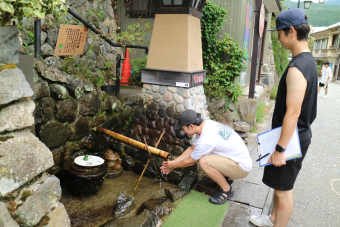 4 日は下呂温泉観光協会会長で水明館代表取締役社長の瀧康洋様と水明館マーケティング部長の吉田様から集客に向けた取組みに関して説明をいただき、学生からの質問にも熱心に回答いただきました。翌 5 日は温泉街において店舗構成や立地に関するフィールドワークを実施しました。