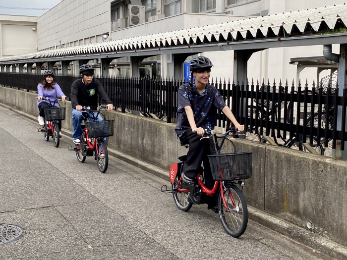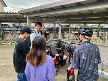 新ポート設置日には、運営統括の株式会社日本海コンサルタントの担当者の方から建築土木工学科の学生に対して、「ふくチャリ」の概要説明や新ポートでの利用方法に関する説明会、終了後には学生に対してミニ試乗会を行っていただきました。