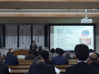 平成27年11月11日(水)に本学原子力技術応用工学科の主催による公開講演会「放射線と量子工学の新展開-福井・大阪の連携-」を開催いたしました。外部講師として、大阪大学の原子力の専門家である大学院工学研究科、環境・エネルギー専攻の山中伸介教授、西嶋茂宏教授、粟津邦男教授をお招きし、それぞれご講演をいただきました。