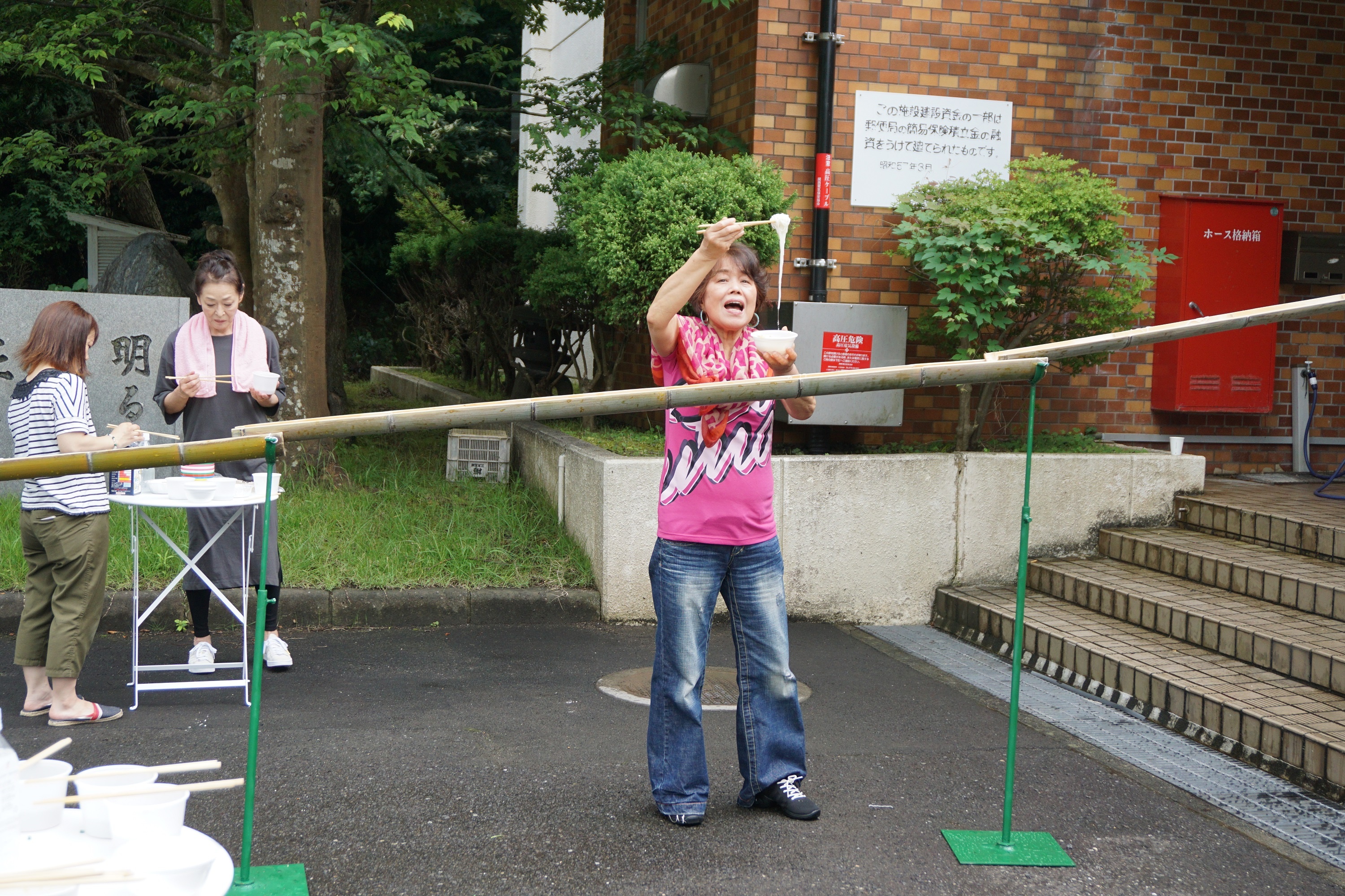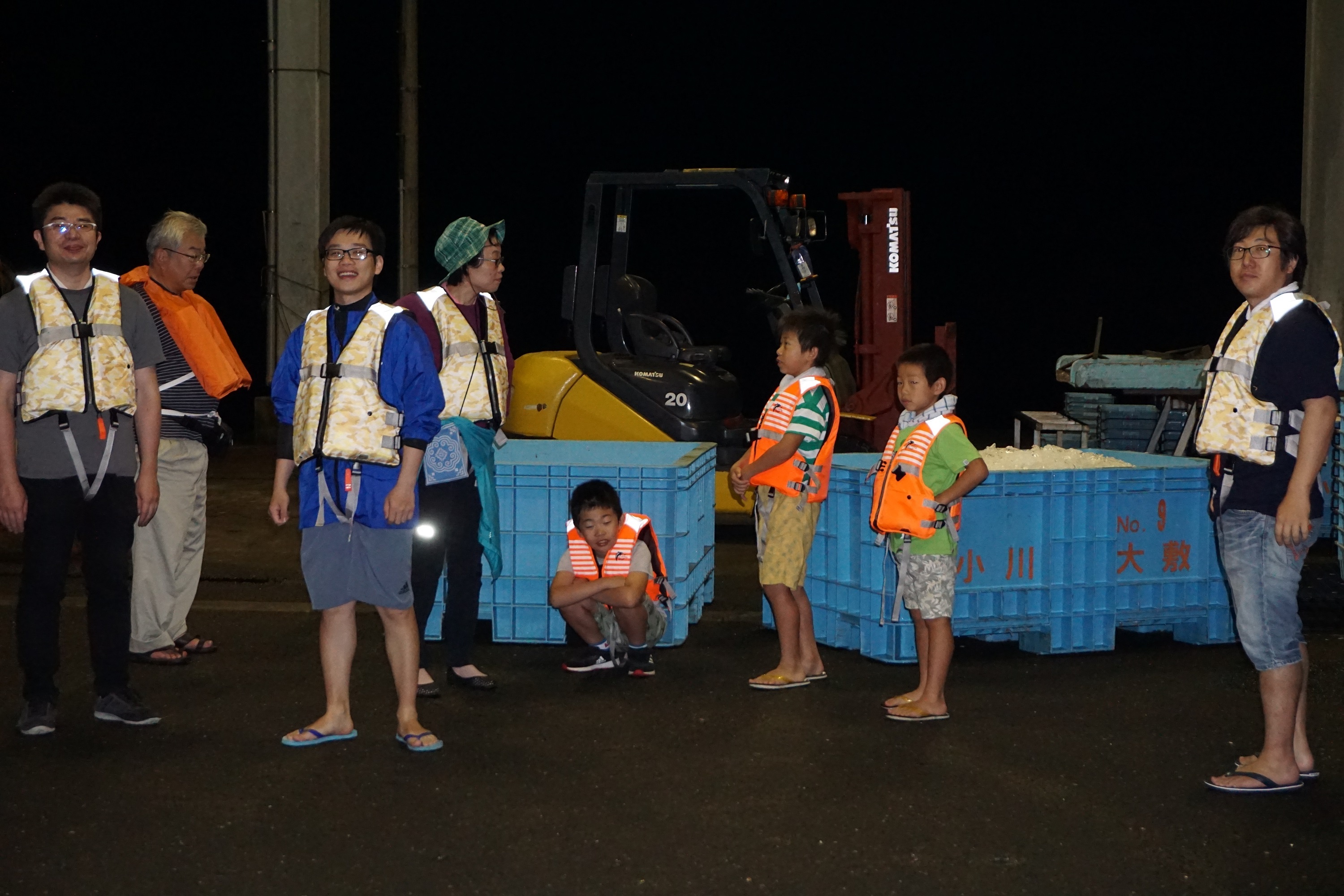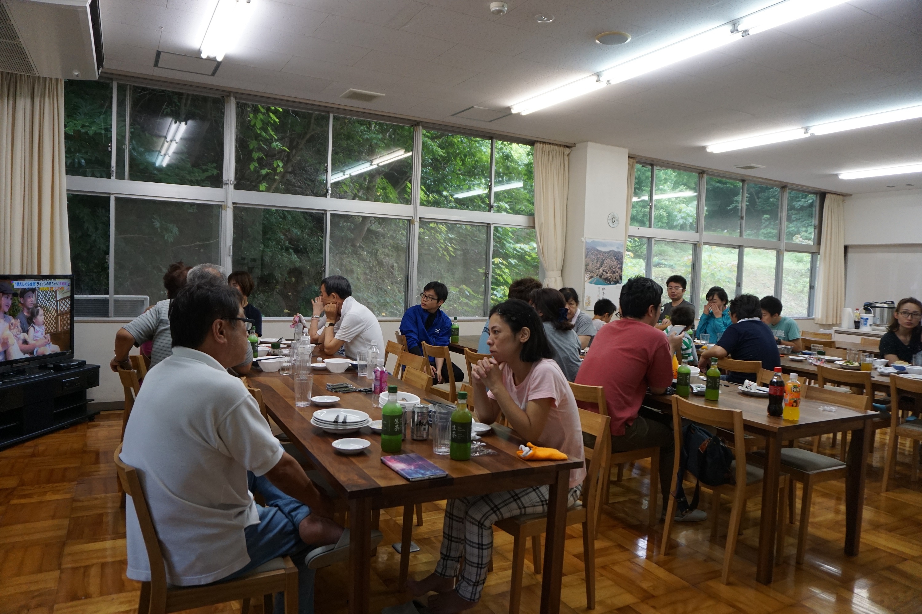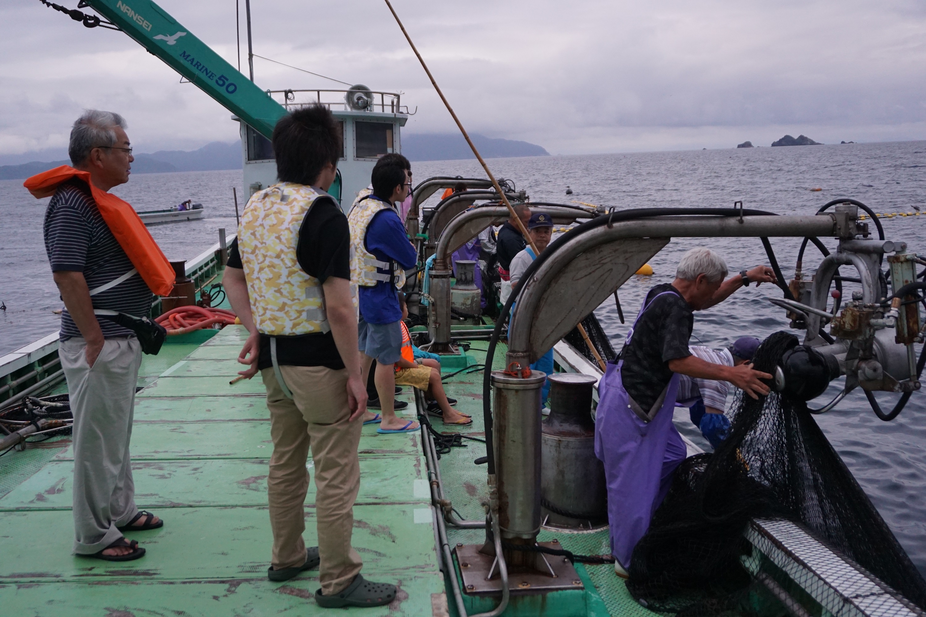 15日は午前3時半に起床して大敷網漁を漁船から観覧し、大漁とはいかなかったのですが普段体験できない漁船に乗船して定置網の網揚げを見ることができました。また、朝はボランティア活動として浜辺掃除をおこない、清掃後全員で朝食をいただき昼は、山下支部長が準備した青竹による流しそうめん体験をしていただきました。