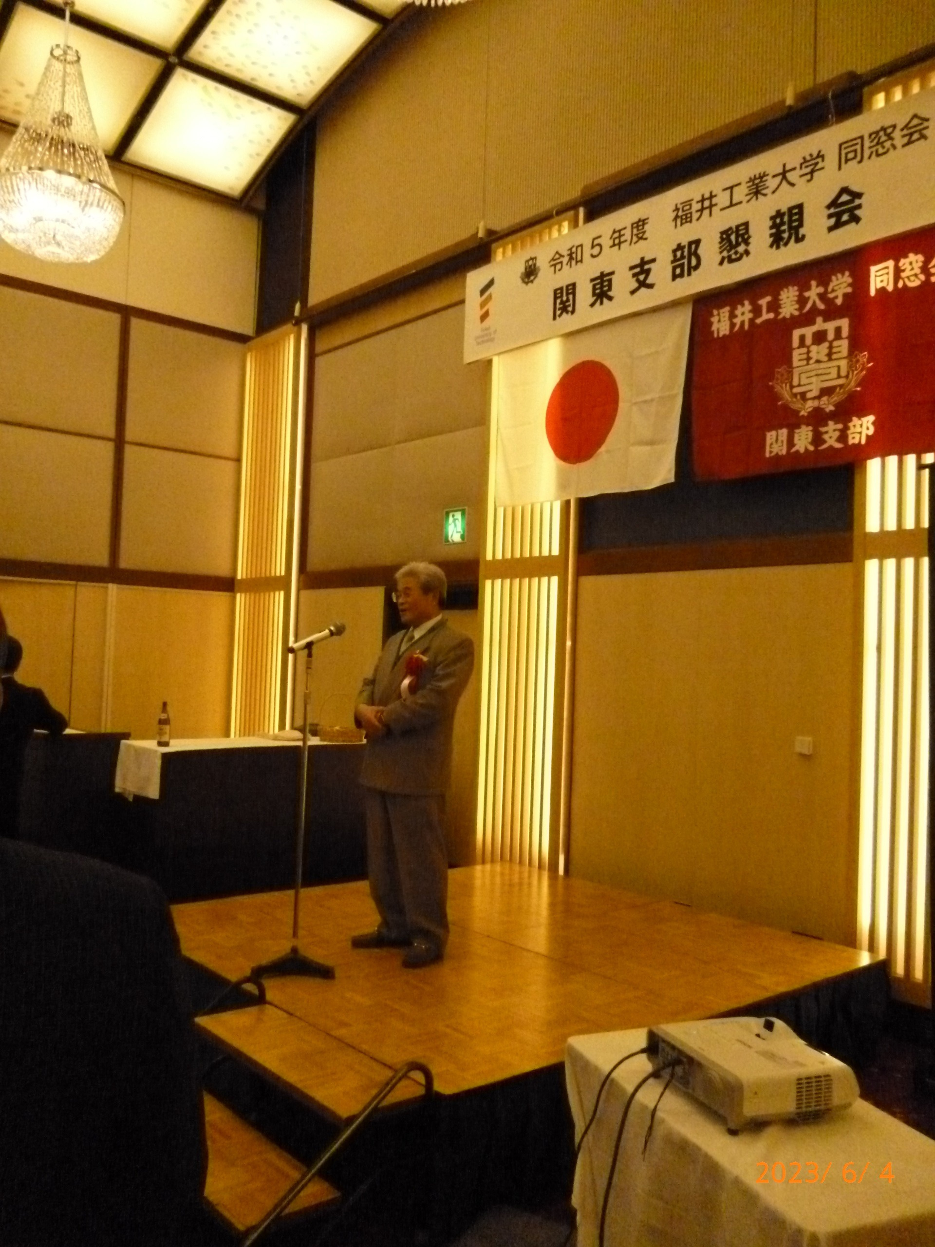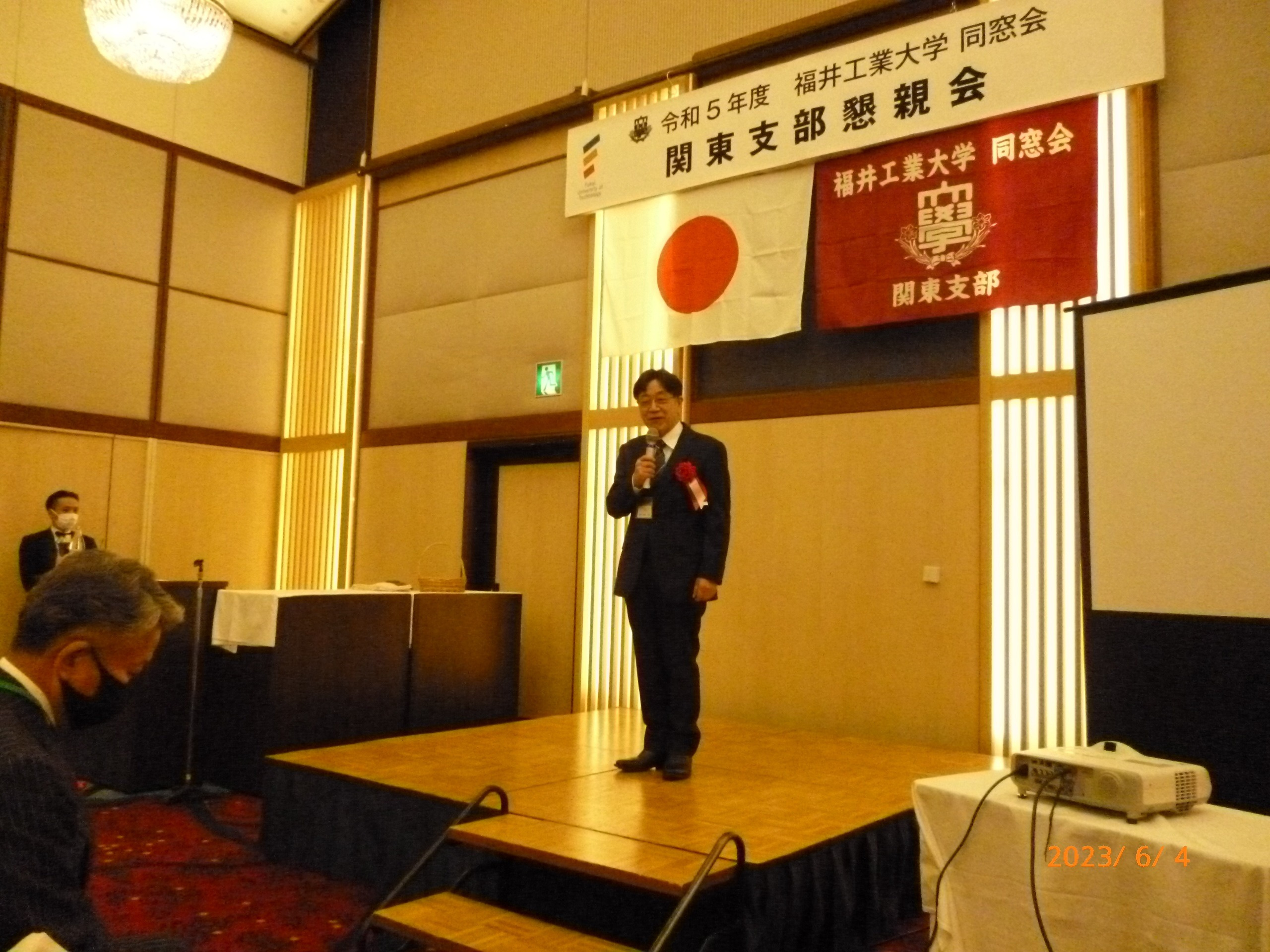 懇親会には、学園より金井理事長、大学より掛下学長、中舎事務局長、山田入試広報課長、鷲田就職支援課長、山本社会連携推進課長のご臨席をいただき、ご祝辞をいただきました。