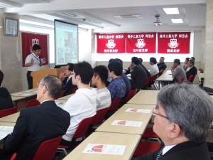 10月9日(日)にホームカミングデーを開催し、総勢130名の同窓生にご参加いただきました。 午前中は福井工業大学学長 森嶋教授のあいさつから始まり、電気電子工学科の中城教授の文化講演が行われ、大学の現状や現在の取組が報告されました。 午後からは場所を大学祭特設ステージに移し、本学のOBでもあります 岡田 透さんによるマジックショーが開催され、ステージ上で披露される華麗なマジックに観客席から大きな歓声が上がっていました。
