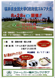 8月28日(日)に第23回 福井県全国大学OB対抗ゴルフ大会が開催されます。