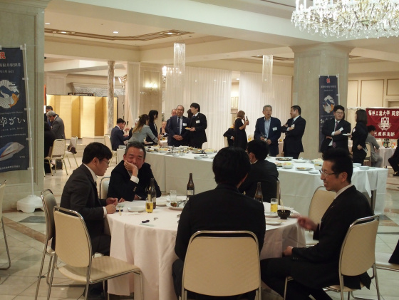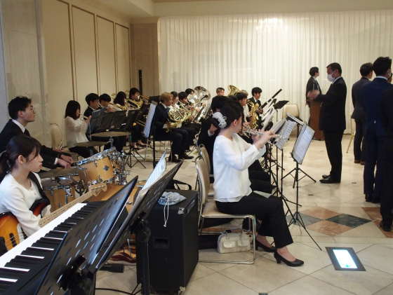 定期総会終了後の懇親会では、大学吹奏楽部の演奏を聴いたり、昔話に花を咲かせながらおいしい食事を楽しみ、最後は山下副会長の万歳三唱で盛会のうちに閉宴となりました。