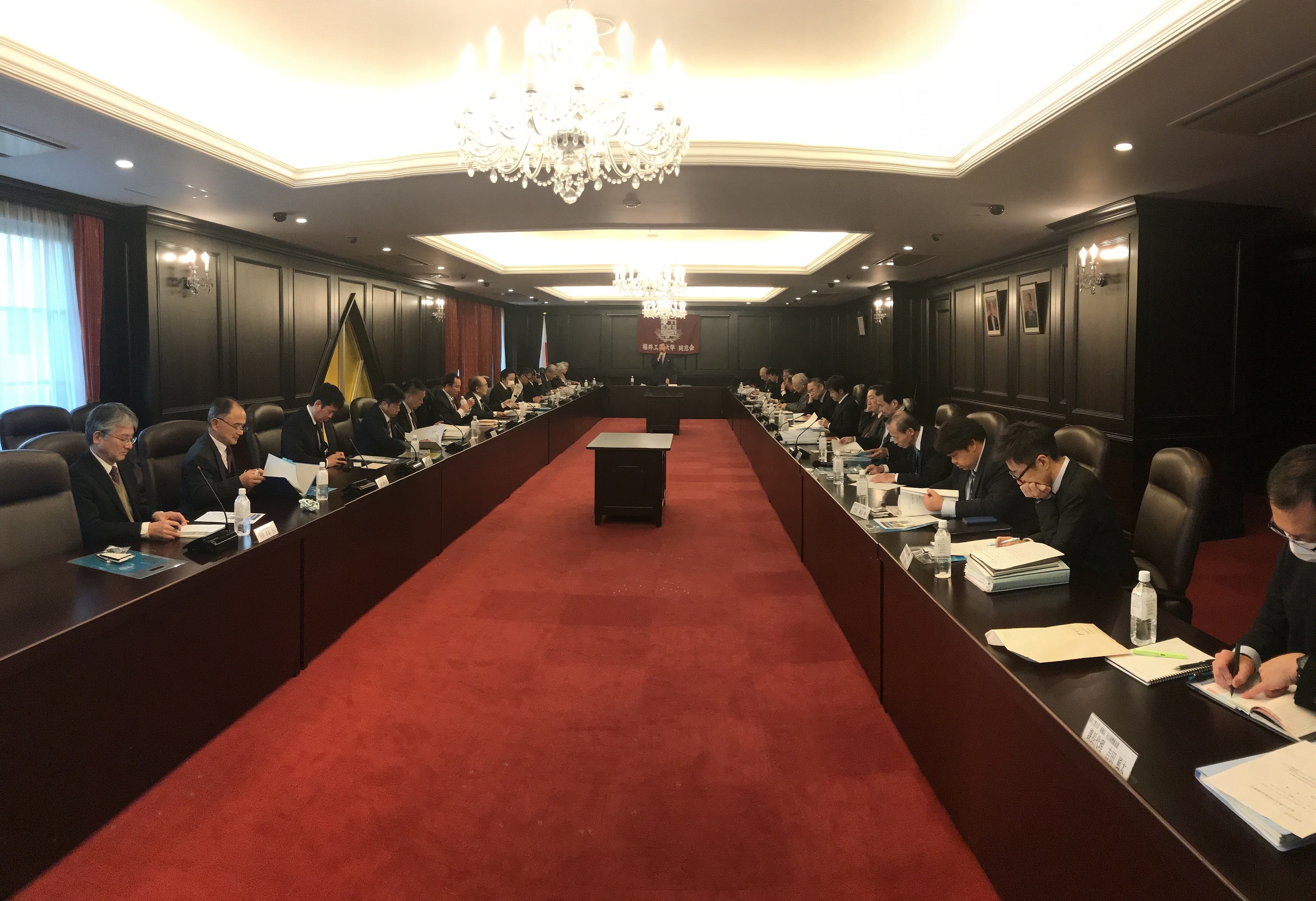 2020.02.18 本部役員会を開催しました。 令和元年度の同窓会本部役員会を、令和2年2月15日(土)に開催されました。 はじめに支部長会議が15時より開催され、次年度の本部定期総会、各支部定期総会の開催日時、次年度の同窓会員親睦旅行案内等に関し審議、報告がなされました。 17時からの理事会では、今年度の事業経過並びに収支決算の中間報告及び、次年度の事業計画(案)並びに収支予算(案)に関し審議がなされました。