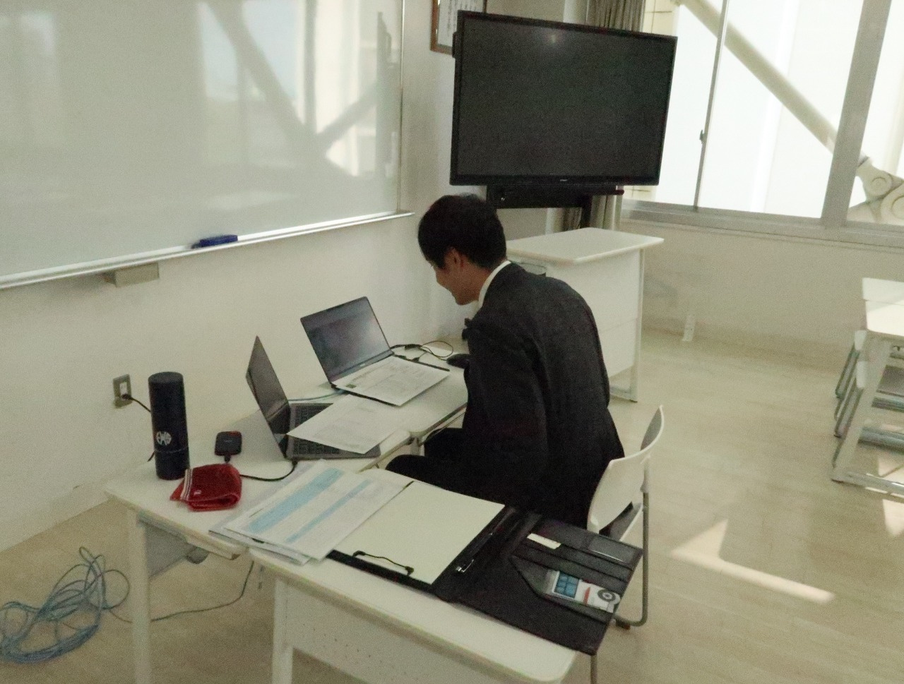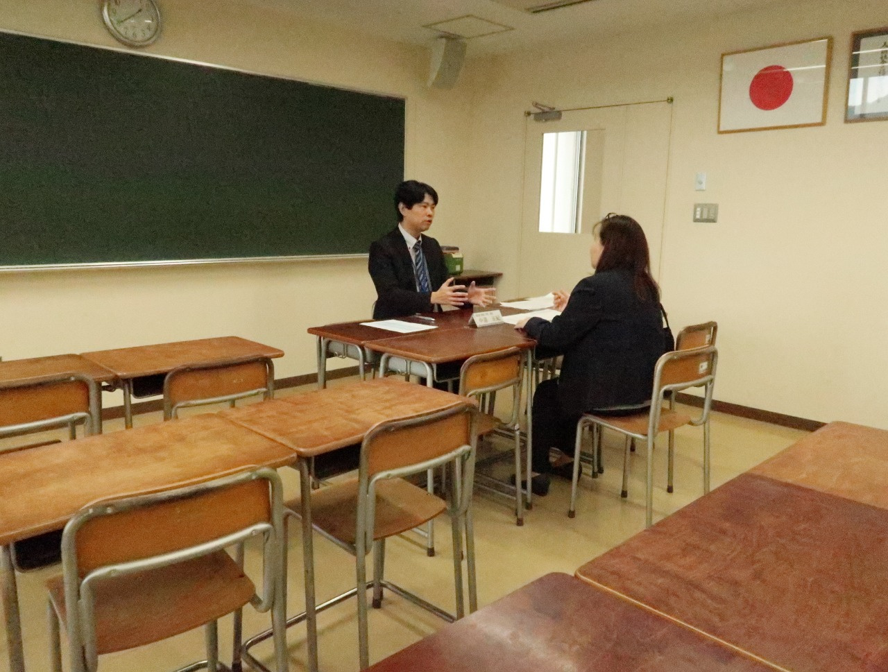 同日に開催した保護者個別懇談会は、対面とオンラインで計55組の保護者の方が個別に担当教員と懇談を行いました。