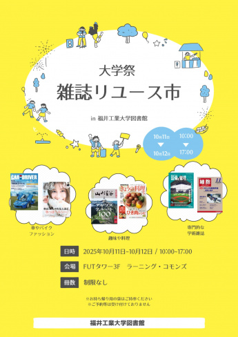 去年、多くの方にお越しいただいた雑誌リユース市を今年も開催いたします! 専門雑誌、スポーツ、料理やファッションなど ご希望の雑誌がございましたら、ど...