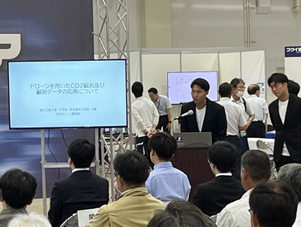 本学ブースでは、『ドローンを用いたCO2観測とモニタリング技術』を出展し、2日間で延べ100名近くの方々にお越しいただきました。