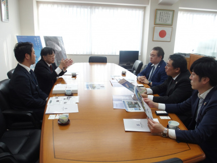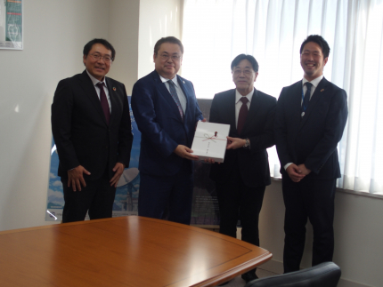 掛下知行学長、吉村朋矩教授(工学部建築土木工学科)は、来学された株式会社イワシタ 代表取締役社長 岩下 大介 様、福井銀行福井北エリア統括店長兼松本支店長 米村 学様、Fプロジェクト福井北エリア支店長代理 坪田 朋也様にご支援いただいたことに謝辞を述べられました。