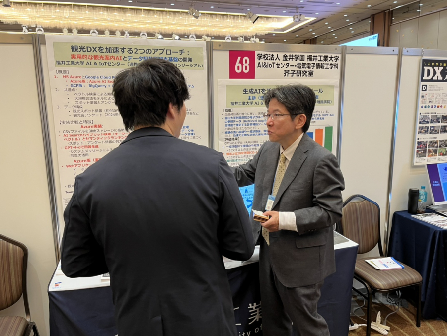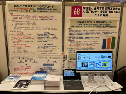 11月13日(水)に「Matching HUB Hokuriku 2024」が開催され、AI&IoTセンター・工学部電気電子情報工学科の芥子 育雄教授が取り組んでいる「観光DXシステム(Azure版・GCP版)」「医師向け病名推定システム」「がん患者向けケアボットシステム」をテーマに出展しました。