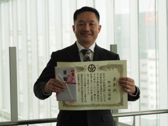 お知らせ NEWS & TOPICS トップページ お知らせ CCRC 福井県科学学術大賞 表彰式!環境情報学部 環境食品応用化学科 柏山祐一郎 教授 2021.02.08 福井県科学学術大賞 表彰式!環境情報学部 環境食品応用化学科 柏山祐一郎 教授 本学環境情報学部 環境食品応用化学科 柏山祐一郎 教授が「第16回福井県科学学術大賞 若手科学学術賞」を受賞し、令和3年2月7日(日)にAOSSA8階福井県県民ホールで杉本知事から表彰を受けました。 今回の受賞は、柏山教授の研究活動(真核生物に普遍的なクロロフィルの無毒化代謝の発見とその研究)が、福井県内にて科学技術の開発や学術研究に携わり福井県の発展に大きく貢献していると高い評価を受け表彰されました。 お問い合わせ:社会連携推進課 PREV 一覧に戻る NEXT