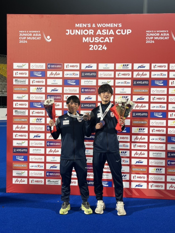 本学スポーツ健康科学科2年の山中惇生が日本代表として全試合に出場し、日本は3位決定戦でマレーシアに2-1で勝利し、第3位の成績を収めました。また、この結果により、日本は2025年にインドで開催されるジュニアワールドカップ(世界大会)への出場権を獲得しました。