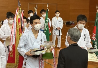 10月17日(日)、富山県砺波市で北信越地区団体組手大会が開催され福井工業大学空手道部が男子団体組手で優勝しました。昨年はCOVID-19の影響で中止となったこの大会に、福井工業大学空手道部は強い気持ちで臨み、予選では圧倒的な強さを見せ、決勝では金沢工業大学に5人制で行われた最初の3試合を制して優勝し、優勝旗を取り戻しました。空手道部は11月20日に東京で開催される全日本大学空手道選手権大会に出場します。応援よろしくお願いします!
