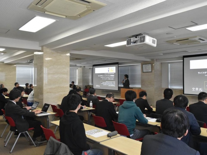 講演の中で八木教授は、大阪大学ライフデザインイノベーション研究拠点の目的や取組の紹介を頂くと共に、今後はパーソナルデータ(個人情報やプライバシーに関する情報)を扱う上での情報基盤の整備、取扱いに対しての社会でのルール(社会基盤)の整備、実際に社会で運用されていくためのマネタイズ(経済基盤)、そしてそれらの情報を扱うことができる人材の育成が必要であると話されていました。