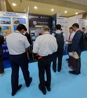 宇宙産業や航空産業に関連する企業や大学が各国から出展する中、本学があわらキャンパスに有する4機のパラボラアンテナには希少価値があり、非常に多くの方々にお越しいただきました。