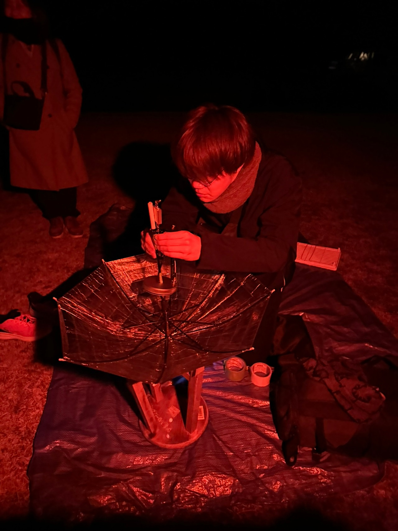 夕方には場所を大野市ミルク工房に移動し、空の世界遺産と呼ばれる星空保護区に認定された南六呂師エリアでの星空観賞、自作した電波望遠鏡による天の川からの電波観測体験を行いました。