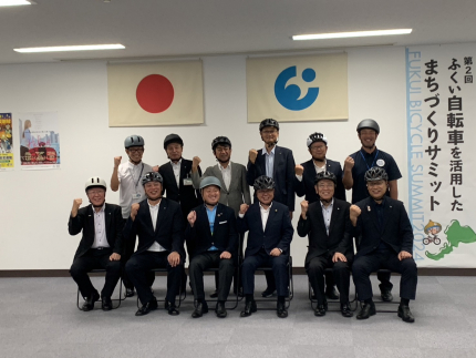 ふくい自転車を活用したまちづくりサミット(通称:ふくい自転車活用サミット)は、福井県自転車アンバサダーで元自転車プロロードレーサーの中島康晴氏や、河合永充永平寺町長(福井工業大学工学部卒)、山田賢一越前市長、米澤光治敦賀市長が発起人となり、2023年に第1回目を越前市で実施しています。「自転車を活用したまちづくりを推進する全国市区町村長の会」に加盟する県内自治体と警察などが連携して広域的に自転車活用を進めることを目的としています。