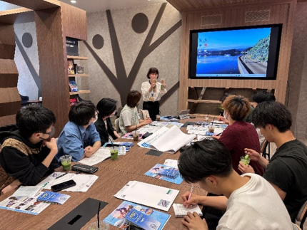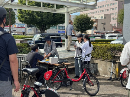 学生が実際にサイクリングルートや市街地を走行し、道路の安全性、案内サインの設置状況、休憩スポットの配置などを調査しました。その結果をもとに、サイクリング環境の改善に向けた提案を行政へ報告しました。