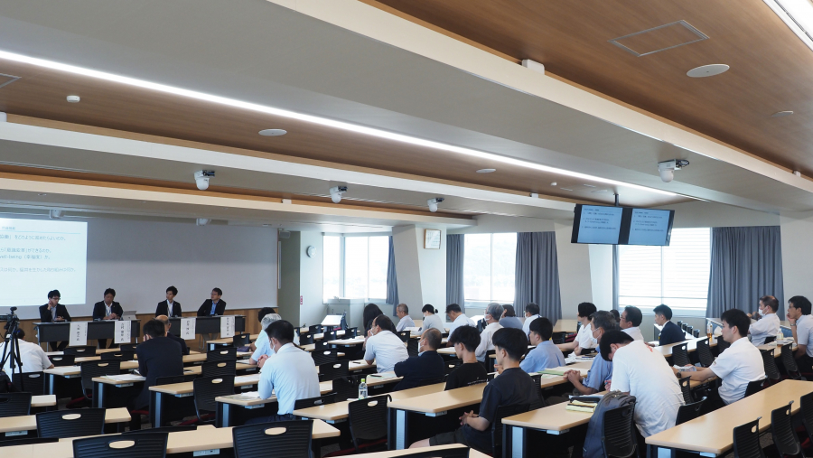 引き続き、福井県内の自治体等との連携した教育・研究活動を進めている菊池武晴教授(本学経営情報学科|まちづくりデザインセンター所属)がモデレーターとなって、登壇者の皆さまとパネルディスカッションを実施しました。