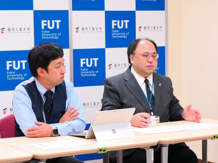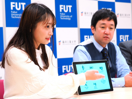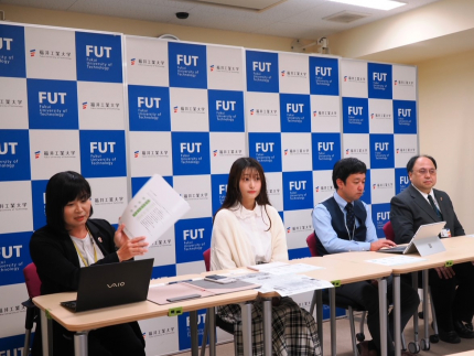 このことを受けて、昨年6月以来福井県との打合せを重ねてきた「FUTまちづくりデザインセンター」に所属する砂川武義教授(原子力技術応用工学科|原子力防災)、三寺潤教授(デザイン学科|まちづくりデザインセンター長・防災まちづくり)、近藤晶准教授と、実際にピクトグラムをデザインした環境情報学部デザイン学科4年の酒井梨世さんの4名が10月17日(火)にメディア向け説明会を開催しました。