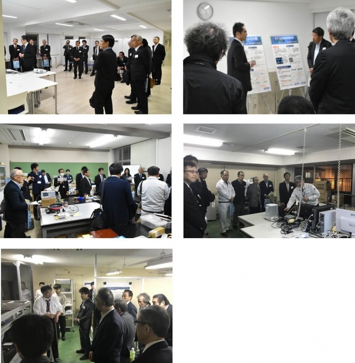 第二部は、ご参加の皆様に本学の研究・実習施設をご覧いただく見学会を実施しました。今回は電気電子工学科、機械工学科、経営情報学科の3学科ご覧いただきました。各研究室・実験室では、教員が説明する各学科の教育研究内容に熱心に耳を傾けていらっしゃいました。