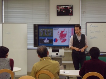 お知らせ NEWS & TOPICS トップページ お知らせ 社会貢献 [地域貢献]「スコットランドの文化とトラベルイングリッシュ」 平成26年度 未来塾~FUT公開講座(英語)~を開催いたしました 2014.11.12 [地域貢献]「スコットランドの文化とトラベルイングリッシュ」 平成26年度 未来塾~FUT公開講座(英語)~を開催いたしました 平成26年10月25日(土)、未来塾~FUT公開講座(英語)~として、基盤教育機構SPEC推進室のサム・トムソン先生を講師に招き「スコットランドの文化とトラベルイングリッシュ」を開催しました。 スコットランドにはスコットランド特有の言語があること自然豊かな土地柄を生かしたスポーツを紹介しました。受講者の方から、「スコットランドの歴史をとおして他のヨーロッパの歴史を知りたくなった。」「自然豊かで素晴らしい国ということがわかった。」「楽しくて、あっという間に時間が過ぎてしまった。」などの声をいただきました。 サム・トムソン先生 お問い合わせ:社会連携推進課 PREV 一覧に戻る NEXT